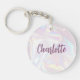 Girly Pink Holograph Design Custom Name Keychain. Personalize this cute keychain with your own name to make it your own or give as a gift. Perfect for back to School or sweet 16 birthday gift.