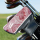 A simple initial monogram with a white lettering (also cute in black). A captivating pink rhodochrosite agate geode print that brings the delicate beauty of this stunning mineral to life. With a close-up perspective, this showcases the intricate details and mesmerizing patterns of the rhodochrosite stone. Its soft, rosy pink hues create a soothing and enchanting visual experience, evoking a sense of serenity and grace. Stylish Elegant Girly Pink Rhodochrosite Crystal Stone Initial Monogram Golf Head Cover.
