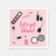 Let's get glam is a fun birthday napkin for girls interested it makeup and dressing up. Lipstick, blush, and nail polish in sparkly pink will be a fun theme for any party.