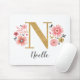 A beautiful, feminine monogrammed pink floral mouse pad, featuring pink flowers and a faux gold monogram letter N. Personalize the mouse pad by adding your name underneath the monogram. Makes a fun gift for a friend or for a bridesmaid gift. Designed for you by Blackberry Boulevard.