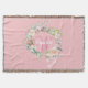 A chic pretty pink initial monogram throw blanket, featuring a beautiful white script name with a pink script surname initial that is framed by a watercolour floral rose garland on a peach pink background. Personalize to create a special keepsake gift to treasure! Designed by Thisisnotme©
