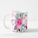 Modern Floral Pattern Coffee Mug with pretty pink, deep plum and lilac flowers and botanical greenery.