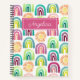 Get ready to go back to school with this cute modern pink sunshine and rainbow pattern notebook for kids. This bohemian design features hand painted colorful rainbows and suns with your kid's name on the front and back cover. Simply customize to make it truly your own.