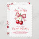 Girly Pink Red Coquette Cherry First Birthday Invitation