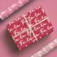 The pink and red color scheme pairs perfectly with the delicate calligraphy, creating a fun and cheerful vibe that’s ideal for anyone who loves a feminine and festive aesthetic. The combination of red, pink, and white gives the wrapping paper a modern flair, blending traditional holiday elements with a bright and girly color palette. Whether you’re wrapping gifts for a close friend or adding a touch of sweetness to your presents, this wrapping paper is perfect for spreading holiday cheer with a unique twist.