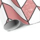 This wrapping paper features an elegant chevron design with a geometric herringbone pattern in white, dusty pink, faux rose gold glitter and black lines.