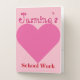 This simple and plain pocket folder design features girly colors, a large pink heart shape, a personalized name, and a custom title.