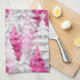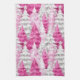 Girly Pink Silver Glam Christmas Trees Stripes Kitchen Towel