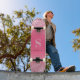 This elegant skateboard features pink glitter drips on a soft pink background. Personalize with your initial and name in a trendy script. Easy to customize by clicking "Personalize".