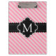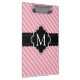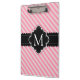 Girly Pink Stripes Pattern Black Custom Monogram Clipboard