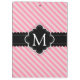 Girly and elegant pink diagonal stripes pattern with with chic black banner frame design in middle for your customized monogram initial.