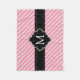 Girly and elegant pink diagonal stripes pattern with with chic black banner frame design in middle for your customized monogram initial.