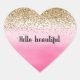 Girly Pink Watercolor Gold Glitter Heart Sticker