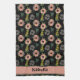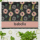 Colourful and cute girly pink white flowers botanical floral seamless pattern on black background kitchen towel. It's a beautiful personalised name any occasional gift for her who loves floral pattern. You can change the text and background colour.