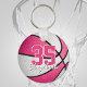 girly pink white personalized basketball keychain