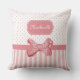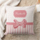 Girly Polka Dot Bow Cute Pink Stripes With Name Throw Pillow