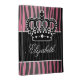 A girly zebra striped pattern in pink and black with a crown. Shown on a Caseable iPad Folio Cases