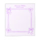 This girly feminine personalized notepad features a decorative purple bows frame on a soft purple background. Customize it with a name and your desired text. This coquette timeless design is an excellent choice for teen girls and women.
