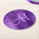 Girly Purple Dripping Glitter Brush Metal Monogram Round Paper Coaster