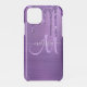 Girly Purple Dripping Glitter Brush Metal Monogram Uncommon iPhone Case