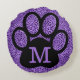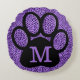 Girly Purple Paw Print with Monogram in Cheetah Round Pillow
