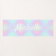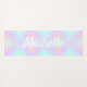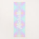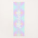 A yoga mat with a rainbow holographic ombre pink and blue background and personalized with your name, or your favorite yoga quote.