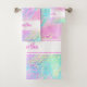 Girly Rainbow Shimmer Leopard Print Personalized Bath Towel Set