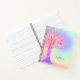 This pretty notebook is decorated with a tree and background in rainbow colors with faux sparkling stars.