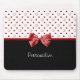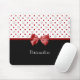 Girly Red and Black Polka Dot Hearts Bow With Name Mouse Pad