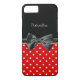Girly Red and Black Polka Dots With Bow and Name Case-Mate iPhone Case