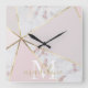 Girly Rose Gold Blush Geometric Monogrammed Large Square Wall Clock ersonalized with your initial and name. Clock is part of a collection. Year can also be edited.