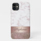This girly glitter phone case will have your phone protected in style. This trendy design features textures of rose gold and white marble, rose gold faux metallic texture and faux rose gold glitter. Atop the rose gold metallic is a name in script typography in dark rose gold for you to personalize. Makes a unique elegant gift for any special occasion. Designed by artist ©Susan Coffey.