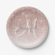 Girly Rose Gold Glitter Blush Monogram Name Paper Plates