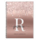 Girly Rose Gold Glitter Drips Monogram Name Script Notebook