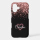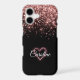 Add a touch of glamour to your new iPhone 17 with this stunning case, a popular trend for 2025 tech accessories. This design features sparkling rose gold simulated faux glitter effects scattered over a sleek black background, with a glittery heart accent. The eye-catching pattern offers a sophisticated aesthetic that is both modern and stylish.