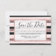 Girly Rose Gold Pink Black Glitter Stripes Pattern Save The Date