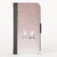 Girly Rose Gold Pink Glitter Monogram Script iPhone Wallet Case