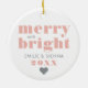 Girly Rose Gold Snowflake Merry and Bright Photo Ceramic Ornament