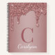 Girly Rose Gold Sparkle Glitter Drips Monogram Notebook