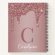 Girly Rose Gold Sparkle Glitter Drips Monogram Notebook with fashion faux blush pink/rose gold glitter drips on a chic background with your custom monogram and name. Designed by Cedar and String. To personalize further, please click the "customize further" link and use the design tool to modify the design. If you need assistance or matching items, please contact us.
