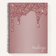 Girly Rose Gold Sparkle Glitter Drips Personalized Notebook with fashion faux blush pink/rose gold glitter drips on a chic background with your name in a trendy font. Designed by Cedar and String. If you need assistance or matching items, please contact us at cedarandstring@gmail.com