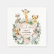 Cute safari themed party napkin featuring adorable jungle animals, pretty pink flowers and rustic botanical greenery. Personalize the wording to suit your event, i.e. baby shower, baby sprinkle, birthday, baptism, christening, holy communion, etc.