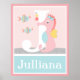 Girly Sea Ocean Life Pink Seahorse Initial Poster