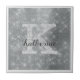 This trendy and unique glam girly design features a large customizable monogram in pastel silver gray in the center in popular serif typography along with a customizable name in popular script with a hand-lettered look in dark grey. The background includes brushed silver metal and glimmering diamonds for added glitter and sparkle. The entire design has a pale silver gray border. You can personalize this item by changing the monogram and name in the product template.
