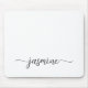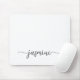 Girly Black And White Simple Minimalist Monogram Name Signature Script Custom Personalized mousepad. These design featuring your first name in a pretty hand lettered style swash tail font typography black script on white color background. These are easy to customize. Great stylish feminine gift for birthday, bridal shower, mother’s day, sweet 16 birthday and and It’s for the girl who loves unique minimal stylish things.
