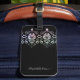 This personalized chic luggage tag has a girly gemstone diamond border with white text on a black background. Customize the luggage tag with the name of your choice to make someone feel extra special. Makes a fun gift for birthdays or for Christmas, or a gift for your best friend. Designed for you by Blackberry Boulevard.