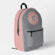 This gray & pink volleyball themed backpack for girls features an image representing a volleyball that has pink panels with a chic, digitally created texture and white seams - customize with her name and monogram or jersey number - backpack colors are customizable - by katz_d_zynes