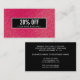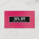 Modern, girly networking discount or coupon card featuring digital image of raspberry pink metallic glitter pattern. Black stripe overlay. Great for beauty, fashion , entertainment and event professionals.