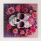 A whimsical blend of vibrant colors and delicate floral patterns adorn this sugar skull, capturing a playful yet elegant essence. The intricate details highlight a feminine charm, with soft hues of pink and lilac accentuating its beauty. This piece celebrates life and individuality, combining traditional motifs with a modern, girly twist that makes it truly unique.