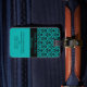Girly and Modern Teal and Black Damask Luggage Tags. Personalize with your own name and address.